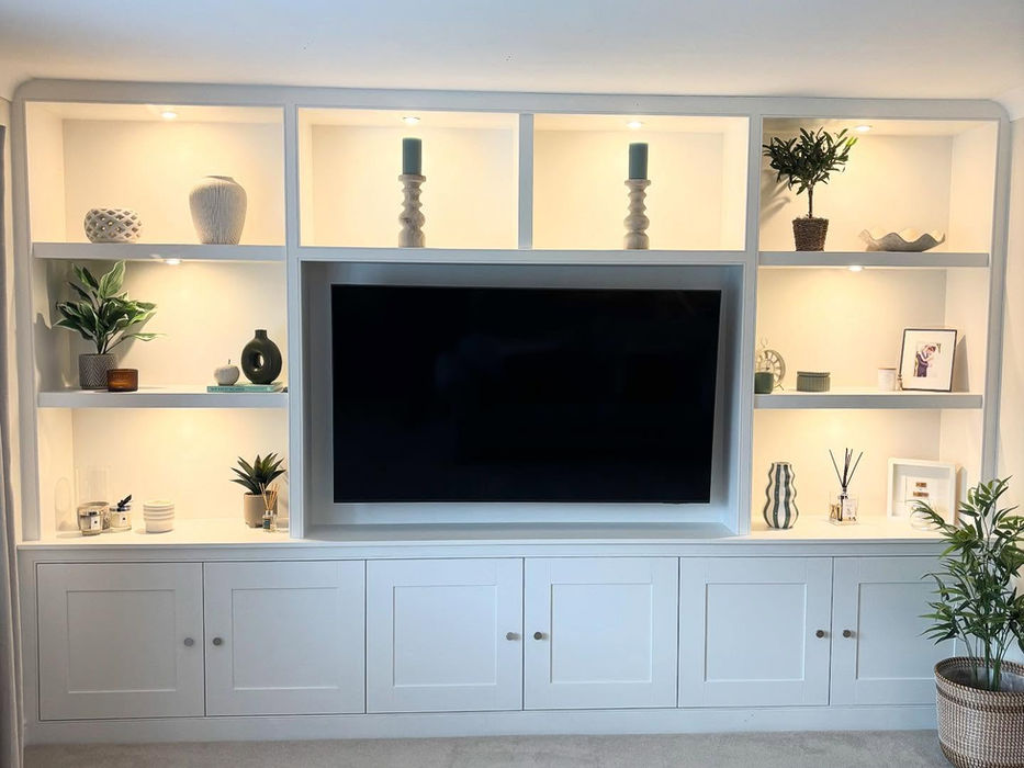 A fitted media wall creates a focal point while keeping the room clean and organised. Built around your TV and layout, it delivers balanced proportions. Storage and finishes are fitted for a seamless, built-in look.